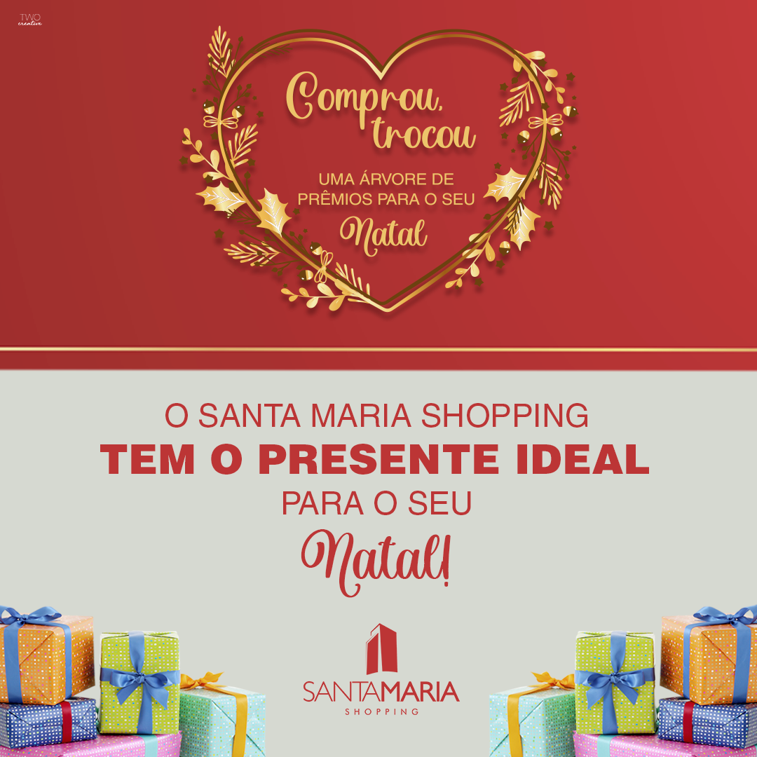 Aproveite e participe da nossa promoção: Comprou, trocou! Uma árvore de prêmios para o seu Natal! A cada R$150 em compras nas lojas participantes da campanha, você ganha brindes ou vale-compras. Promoção válida de 20/11 até 24/12.