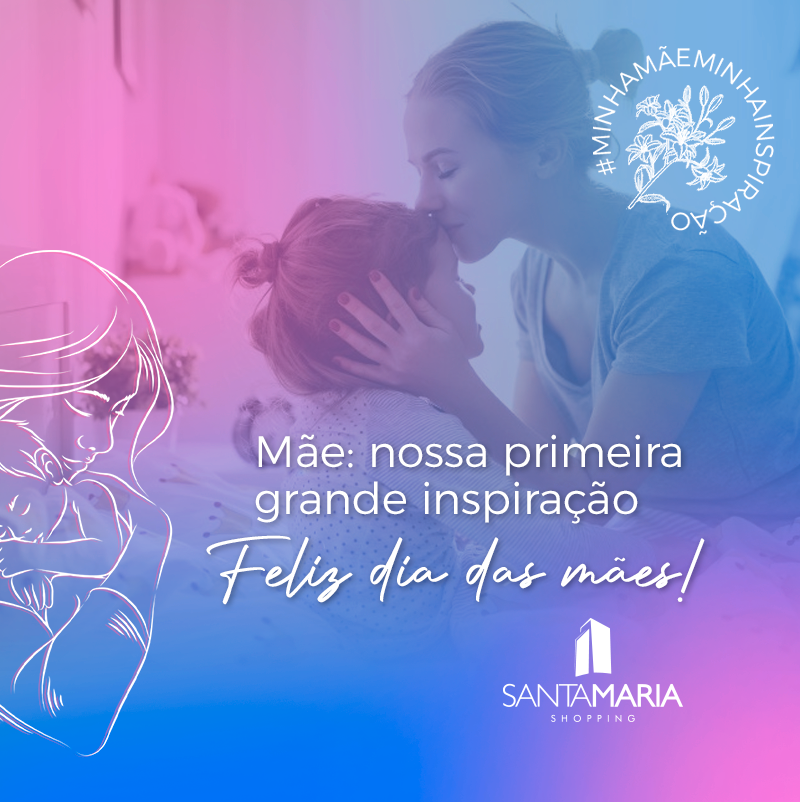 Desde o momento que nascemos, criamos uma conexão com ela. Nossa mãe é inspiração, é porto seguro, é carinho e afeto. Neste dia, não esqueça de homenagear aquela que fez tanto por você. Declare seu amor por quem sempre te inspira. Feliz dia das mães! Santa Maria Shopping. O nosso Shopping do coração! ...