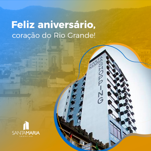 Em 17 de maio é dia de celebrar mais um ano de conquistas da cidade que é o coração do Rio Grande. Parabéns, Santa Maria! Nós temos orgulho de fazer parte da sua história. Nosso coração bate no mesmo compasso! Uma homenagem do Santa Maria Shopping pelos 163 anos da nossa cidade. Santa Maria Shopping. O nosso Shopping do coração! ...
