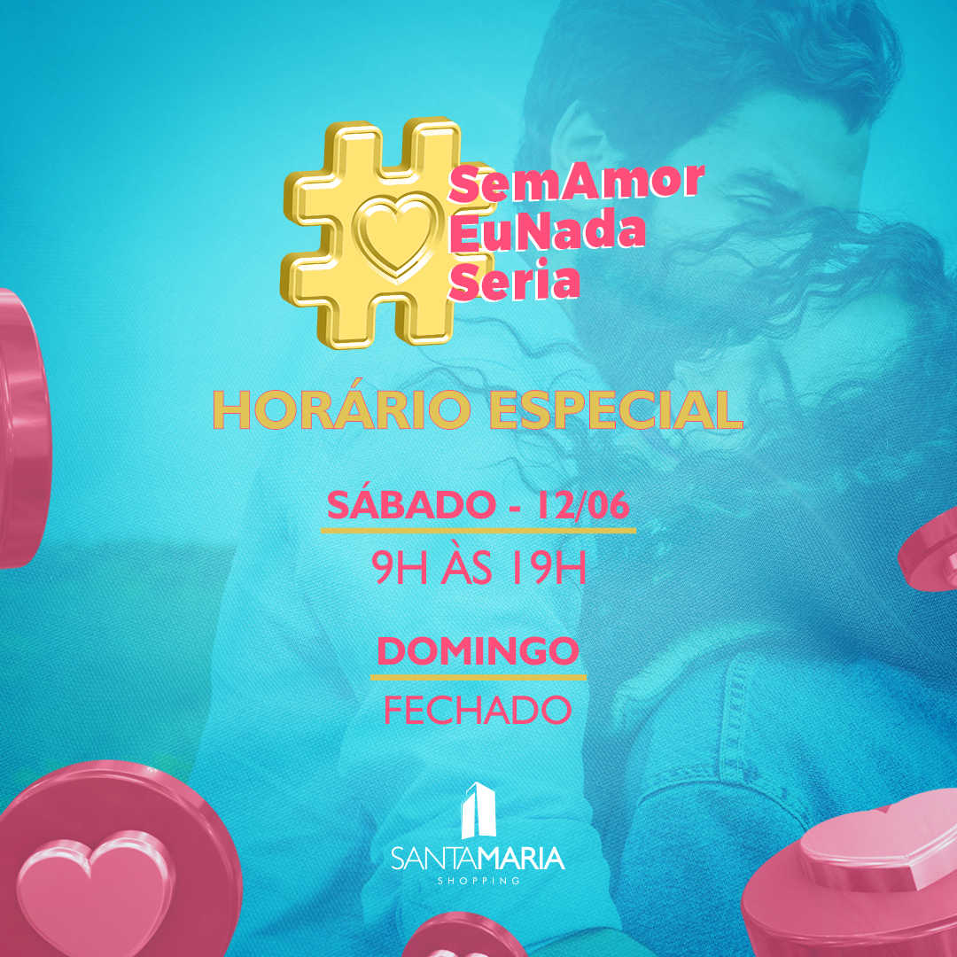 Assim como o amor, o nosso horário de funcionamento também é especial nesta data. Programe-se para não esquecer de comprar uma lembracinha ou presentão para o seu grande amor. SÁBADO - 12/06 LOJAS E SERVIÇOS – ESSENCIAIS E NÃO ESSENCIAIS: atendimento presencial das 9h às 19h. PRAÇA DE ALIMENTAÇÃO: para consumo no local das 9h às 19h. DOMINGO Fechado. Adotamos todas as medidas necessárias que...