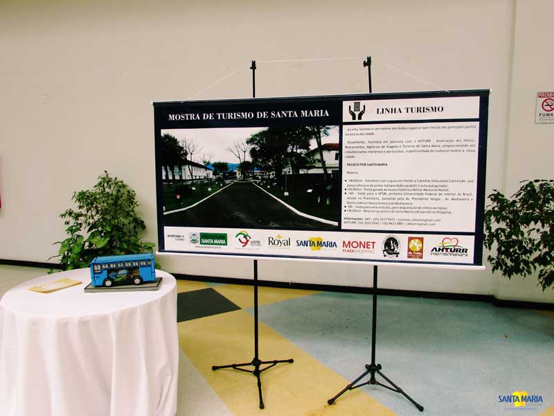 A Secretaria de Turismo de Santa Maria expõe, até o dia 28 de fevereiro, no 4º andar do Santa Maria Shopping, as principais atrações turísticas de nossa cidade. A exposição aborda as quatro principais atividades turísticas que nossa cidade oferece aos visitante: O Turismo Paleontológico; Religioso; de Aventura e a Linha Turismo. Venha conferir um pouco mais de cada um desse tipo de atração que nossa cidade se destaca.